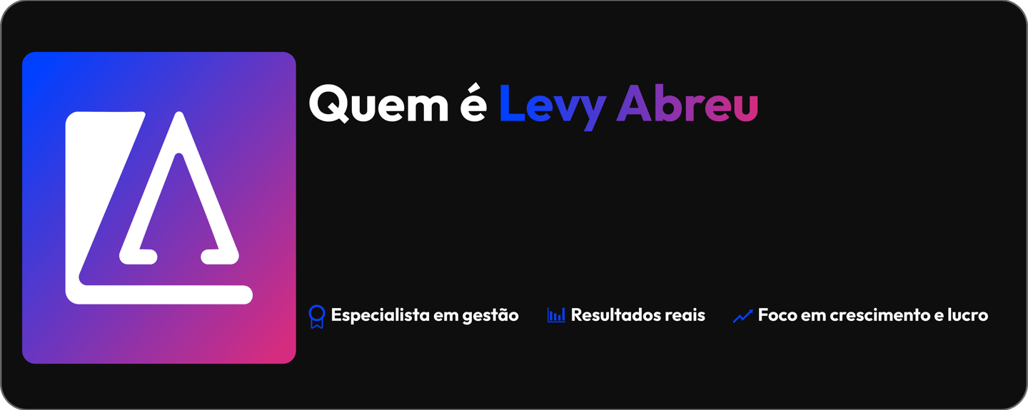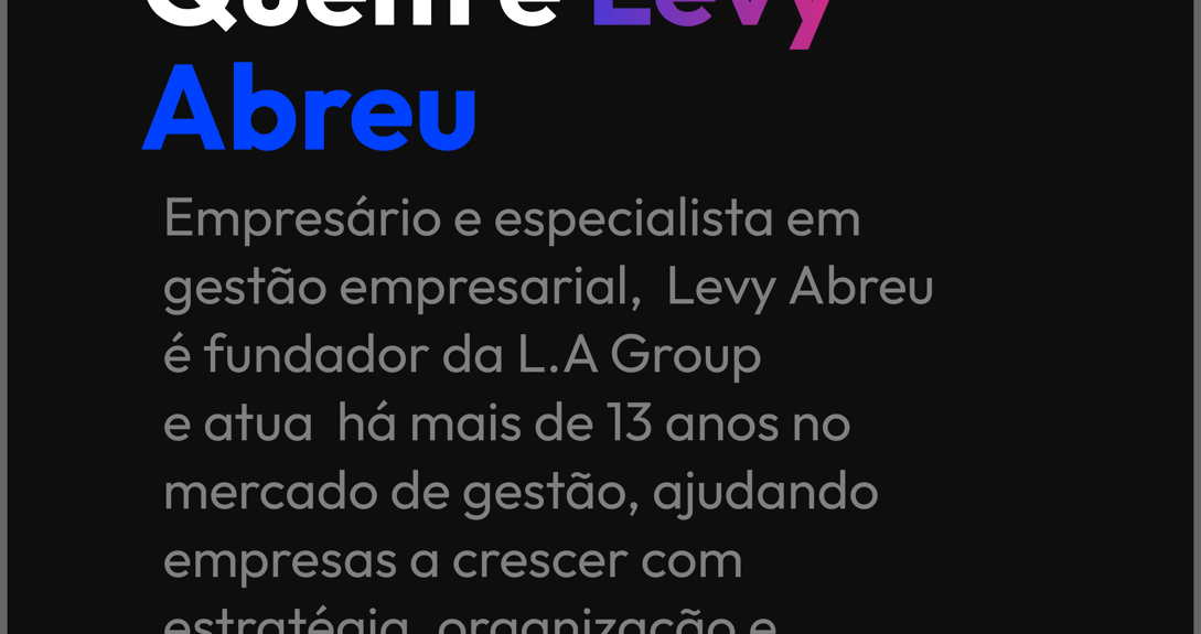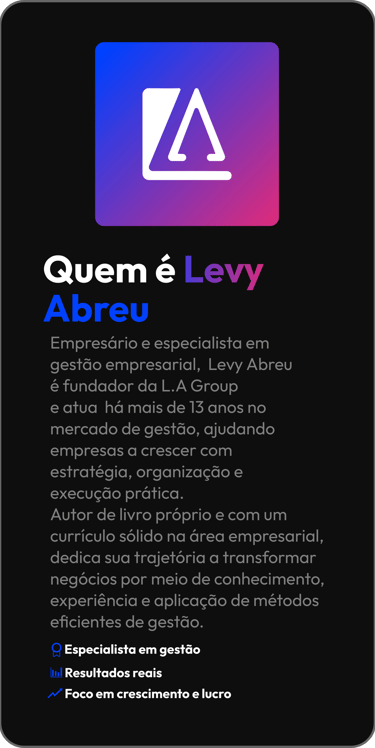 Empresário e especialista em gestão empresarial, Levy Abreu é fundador da LA Group e atua há mais de 13 anos no mercado de gestão, ajudando empresas a crescer com estratégia, organização e execução prática.