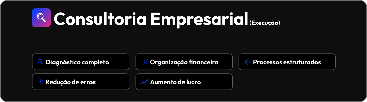 Entramos na sua empresa, identificamos falhas e estruturamos processos para gerar lucro e organização.